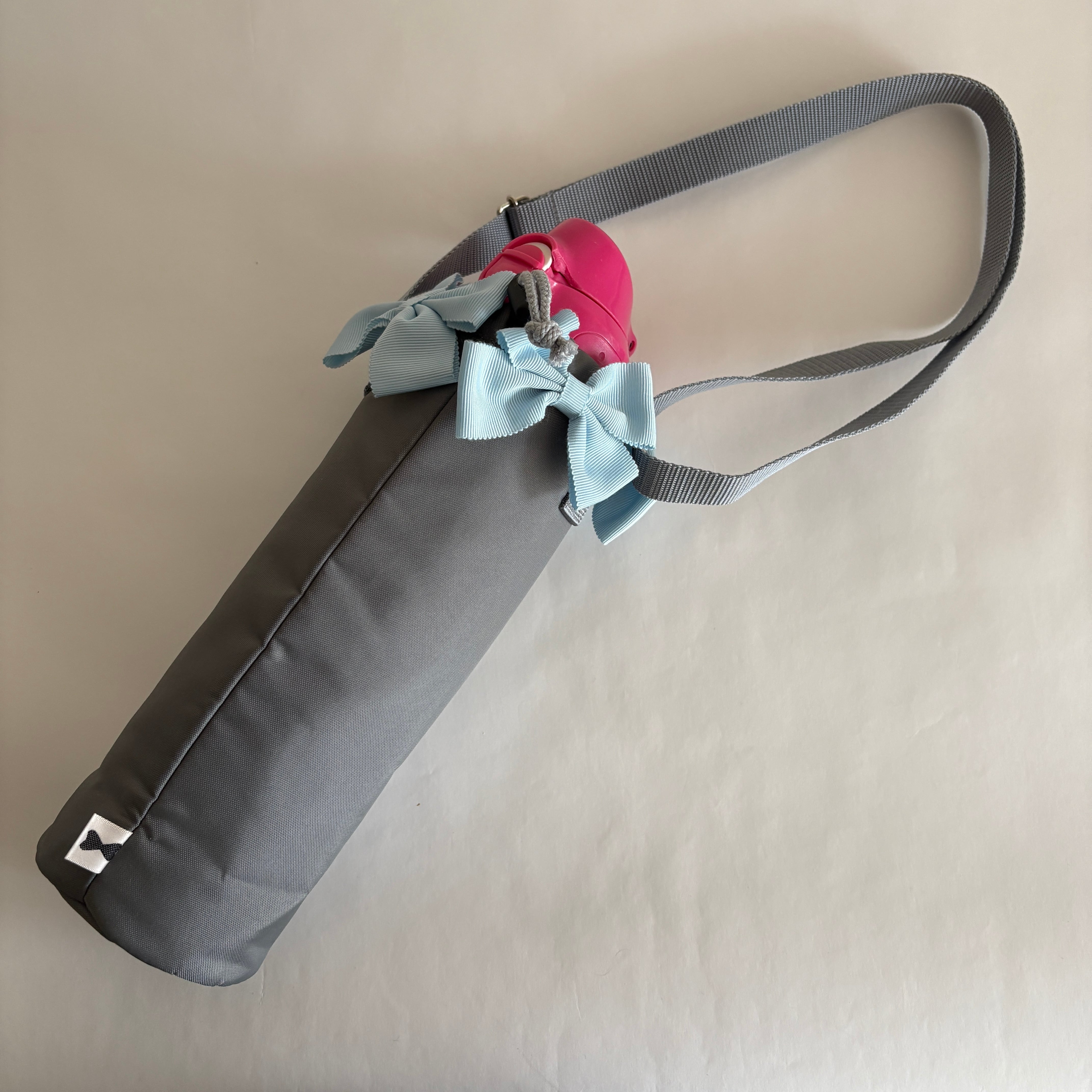グレー☆水筒ホルダー(約800〜1000ml対応)水色リボン